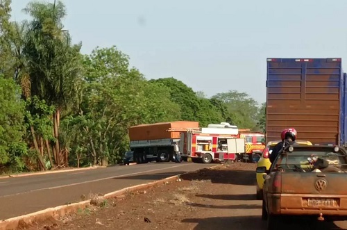 acidente com duas mortes e um ferido, ocorrido na manhã desta segunda-feira (27) na BR-376, foi causado pelo motorista da carreta Volvo. Ele não teve o nome incluído no boletim de ocorrência registrado na 1ª Delegacia de Polícia Civil. O acidente ocorreu entre Dourados e Fátima do Sul, perto do Travessão do Guilherme.