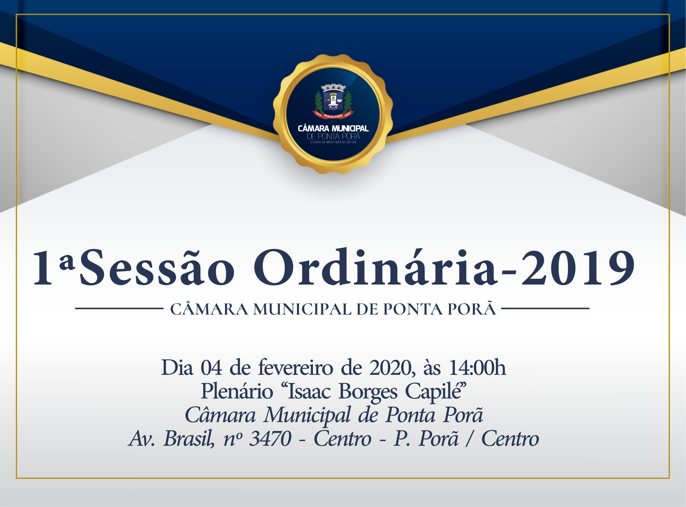 O presidente da Câmara Municipal de Ponta Porã, Rony Lino Miranda e demais vereadores convidam toda a população para participar da primeira sessão ordinária do 7º período legislativo, nesta terça-feira, 04 de fevereiro, às 14 horas no Plenário Isaac Borges Capilé.