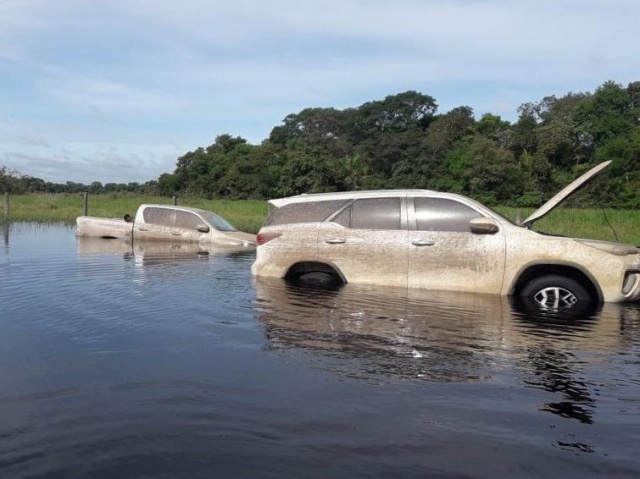 Equipe do DOF (Departamento de Operações de Fronteira) que participa da Operação Hórus localizou, na madrugada desta terça-feira (18), duas caminhonetes submersas numa lagoa em área de difícil acesso em Aquidauana – a 135 km de Campo Grande. Os dois veículos estavam com placas falsas e foram furtados em São Paulo e no Paraná neste mês.