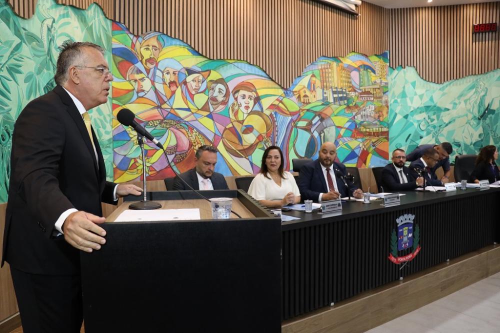 Após a abertura oficial, acompanhada por um Plenário lotado de cidadãos e autoridades de Ponta Porã e Pedro Juan Caballero, foi aberto espaço para que o Chefe do Poder Executivo Municipal fizesse a leitura da tradicional Mensagem na abertura dos trabalhos do Legislativo.