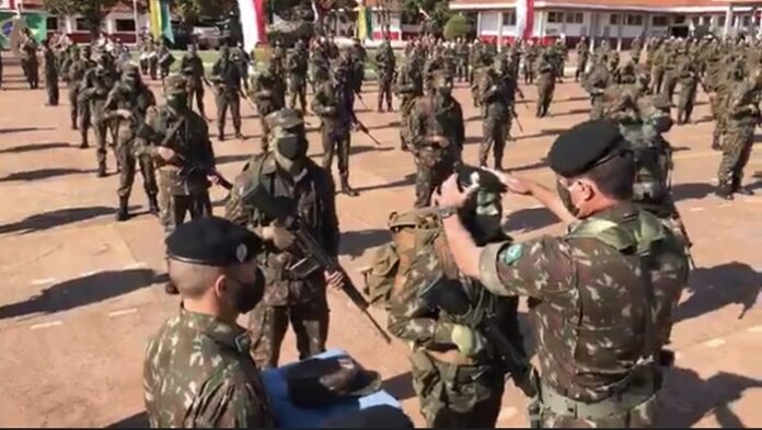 A cerimônia este ano por causa da Pandemia não contou com a presença dos familiares e amigos dos recrutas e foi presidida pelo Comandante do 11 RC Mec Ten. Cel. de Cavalaria Sergio Firmino.