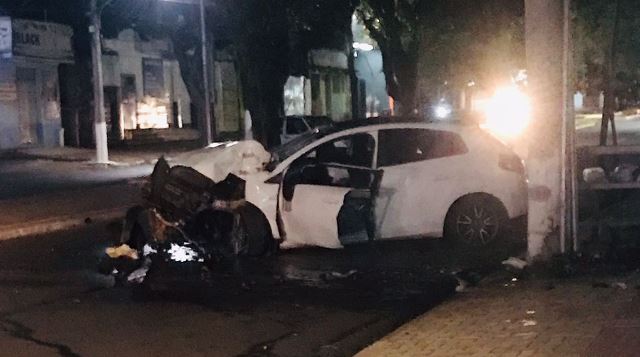 Em Ponta Porã, motorista perde controle de carro e bate em poste de iluminação