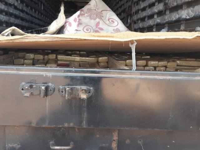 Ao descobrirem que a documentação do veículo era falsa, os policiais fizeram vistoria no compartimento de carga e perceberam o fundo falso no assoalho onde estavam os tabletes de maconha.