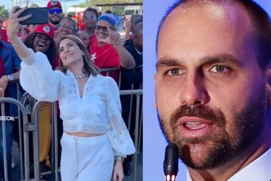 Eduardo Bolsonaro postou no Twitter vídeo em que a parlamentar sul-mato-grossense tira fotos com petistas.