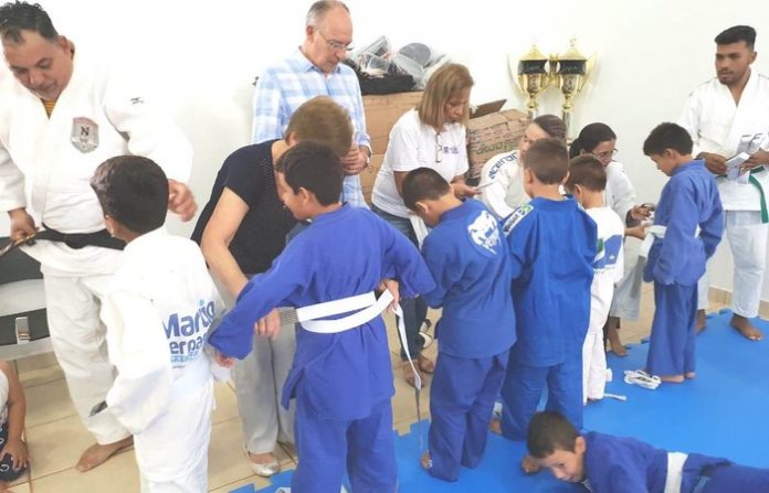 Durante a troca de faixas aos jovens judocas participantes do projeto social desenvolvido pela Fundação de Cultura e Esportes de Ponta Porã (Funcespp), o prefeito Hélio Peluffo destacou a relevância dos investimentos nos setores de esporte e cultura. “Investir nessas áreas enobrece, oportuniza atividades aos jovens preparando-os para um futuro com melhores expectativas”, atestou o prefeito Hélio.