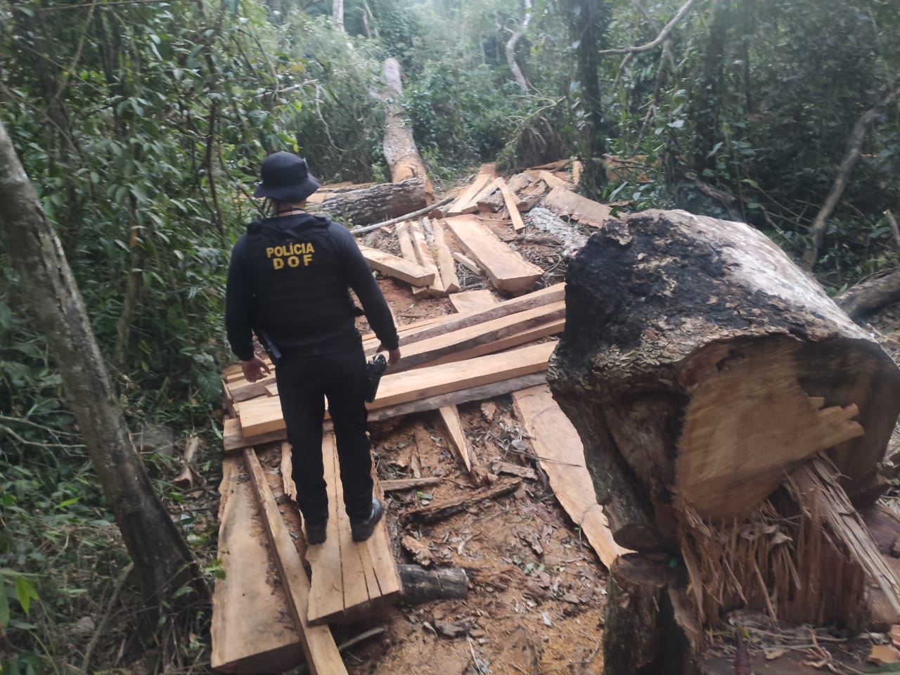 Policiais do Departamento de Operações de Fronteira (DOF) apreenderam, na tarde de ontem (terça-feira) 56 metros cúbicos de madeira extraídos de forma ilegal de uma reserva ambiental.