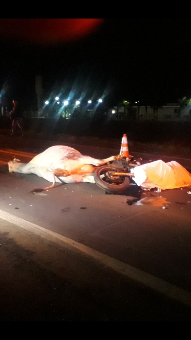 Um mecânico industrial de 49 anos morreu na noite de domingo (6) ao bater a motocicleta que pilotava em uma vaca, na BR-262, saída para Aquidauana, em Campo Grande.