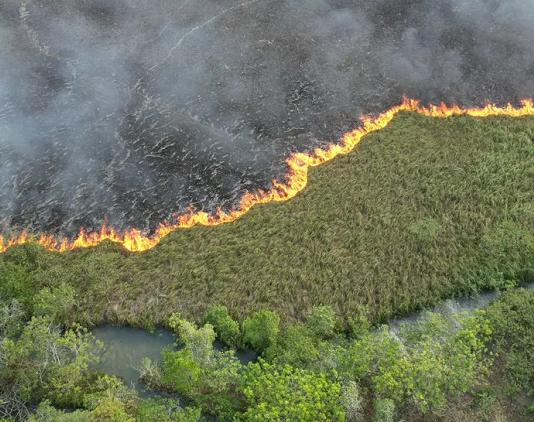 Há 5 dias em chamas, fogo já destruiu 500 hectares de vegetação em área ao lado de rio cristalino em Bonito