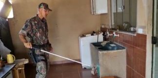Moradora encontra jiboia escondida no telhado da área de serviço em...