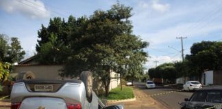 Veículo capota depois de colisão em cruzamento sem sinalização