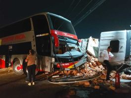 Campo grande: Caminhão carregado de tijolos e ônibus com 42 passageiros batem na Capital