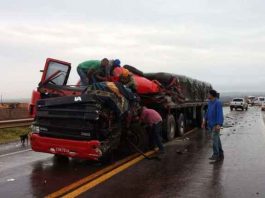Colisão frontal entre ônibus e camionete deixa dois mortos e sete...