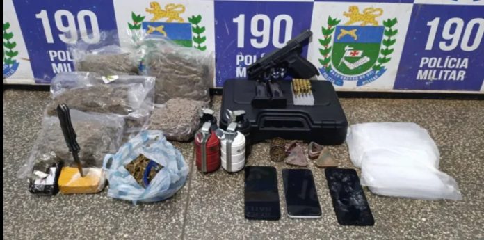 Nas diligências realizadas nas proximidades, os policiais localizaram, em meio à vegetação, uma maleta contendo uma pistola calibre 9mm, dois carregadores e diversas munições. Durante a continuidade das buscas em uma residência próxima, as equipes encontraram ainda granadas de efeito moral, aparelhos celulares, um caderno de anotações e diversas porções de maconha, skunk e haxixe, além de documentos em nome de terceiros.