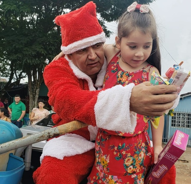 Papai Noel da GCMFRON, entrega presentes a crianças de Ponta Porã