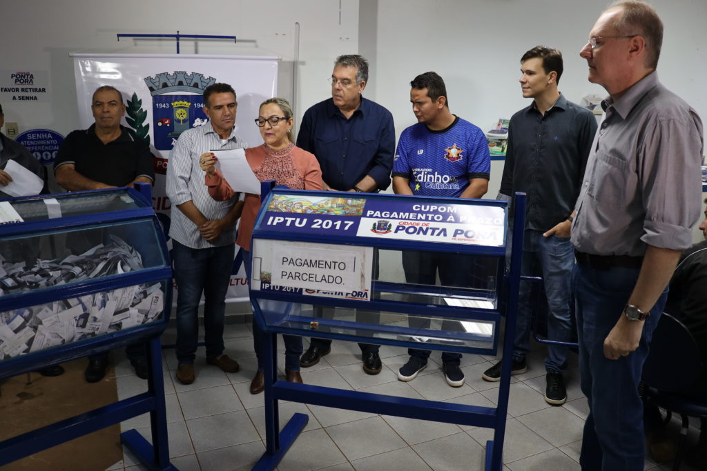 Quatro contribuintes moradores de distintos bairros de Ponta Porã foram sorteados com duas motos e dois carros zero quilômetro, em sorteio realizado na manhã desta terça-feira, dia 17, na central de arrecadação da prefeitura. O sorteio foi acompanhado pela imprensa, vereadores, contribuintes e secretários municipais, com dois momentos. O primeiro, para os contribuintes cujo pagamento é parcelado e posteriormente com todos os cupons em uma mesma urna.