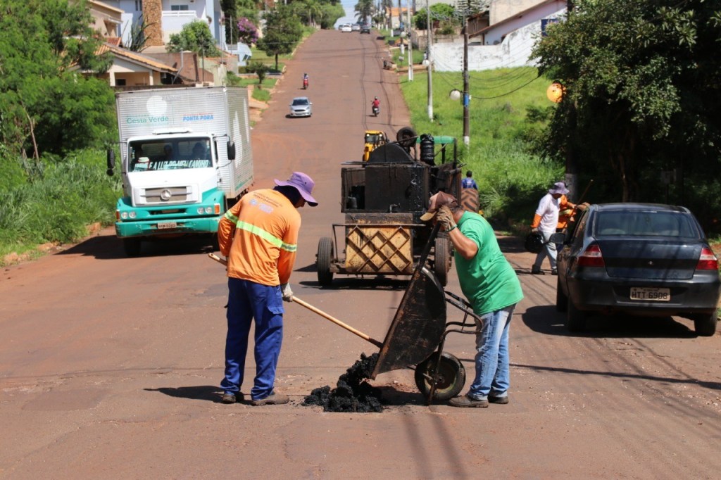 A Prefeitura Municipal de Ponta Porã, através da Secretaria de Obras e Urbanismo, mantem ritmo forte de trabalho desde o início do ano e hoje, mais uma vez realizou operação tapa-buracos, podas e revitalização de ruas e avenidas.