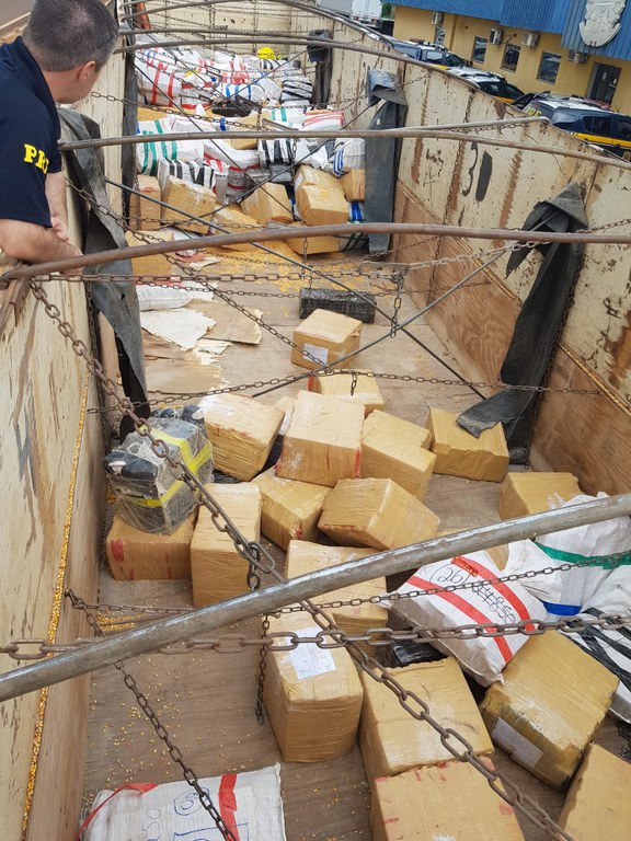 A droga, avaliada em mais de 9 milhões de reais, estava escondida em uma carga de milho.