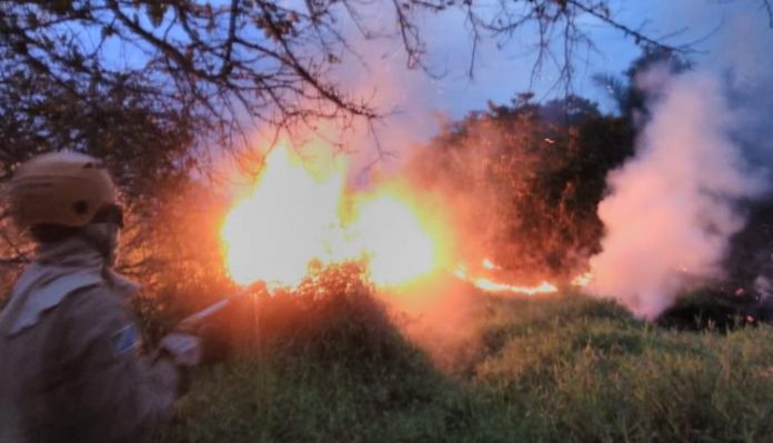 Segundo a Central de Operações do Corpo de Bombeiros Militar de Corumbá, uma equipe de combate a incêndios florestais foi acionada e deu início ao trabalho, que só foi finalizado durante a madrugada desta terça-feira (27).