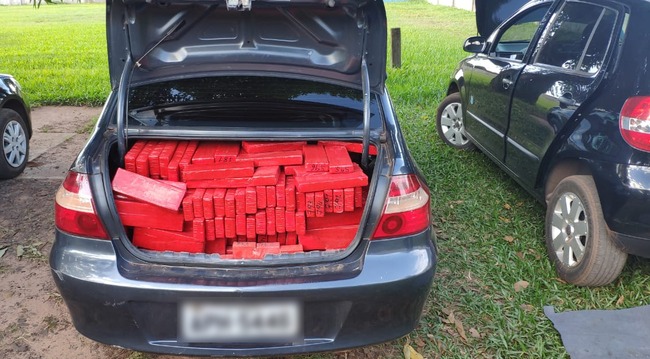 Policiais do Departamento de Operações de Fronteira (DOF) apreenderam na tarde de sexta-feira, um veículo GM Prisma de cor cinza com placas de Itaquiraí (MS), carregado com vários volumes prensados de uma substância entorpecente, aparentemente maconha, com peso total de 495 quilos.