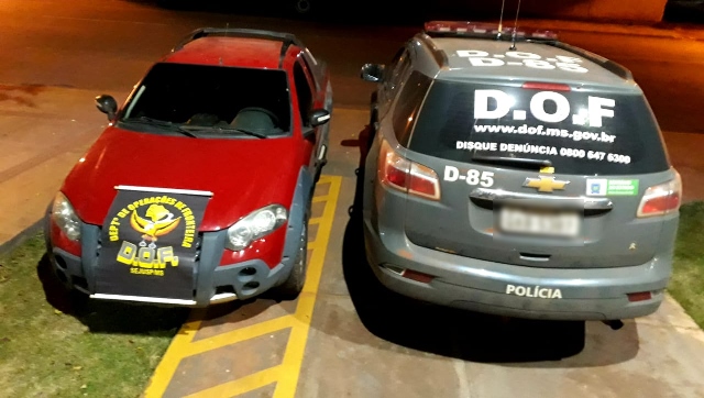 Durante a vistoria localizou-se indícios de adulterações dos sinais identificadores e a falta do lacre na placa. Durante a checagem dos agregados do veículo (numeração do chassi e motor), os policiais localizaram um registro de Roubo ocorrido em Brasília (DF).A ocorrência foi registrada e entregue na Delegacia da Polícia Civil em Sidrolândia, onde o homem permaneceu à disposição da Polícia Judiciária.